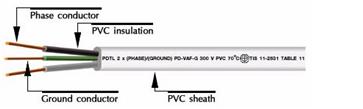 300 V. 70 oC Two core with ground , flat twin copper conductor,